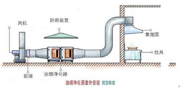 油烟净化器室外安装示意图(低空排放)及安装实例